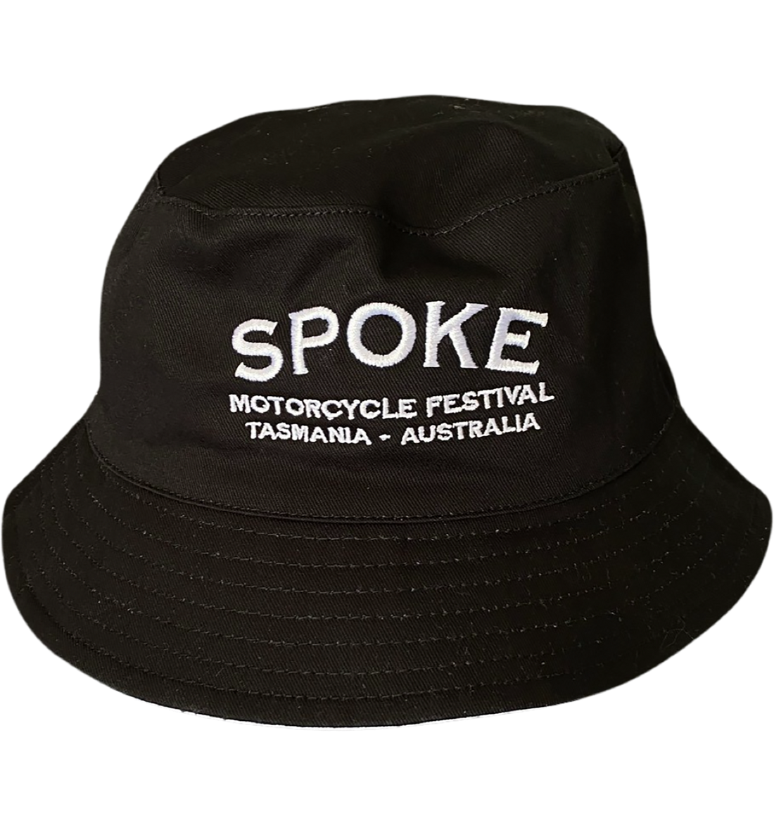 Black Snap Back, Foam Backed, Mesh Truckers Cap with a white 'Spoke Motorcycle Festival' embroidered...