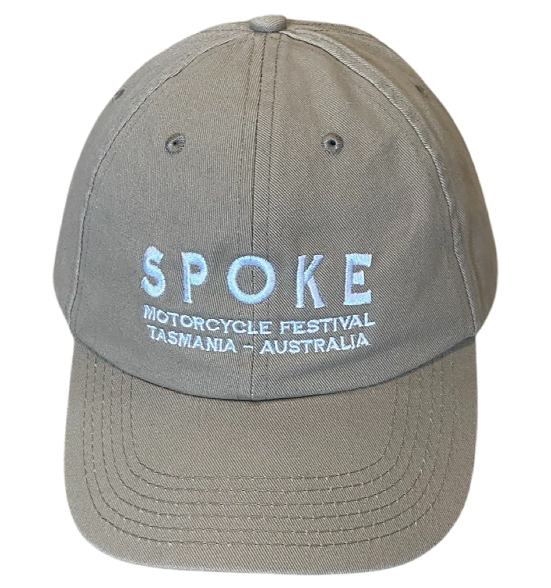Clay Washed Chino Twill Cap with 'SPOKE' and location embroidered on the front.