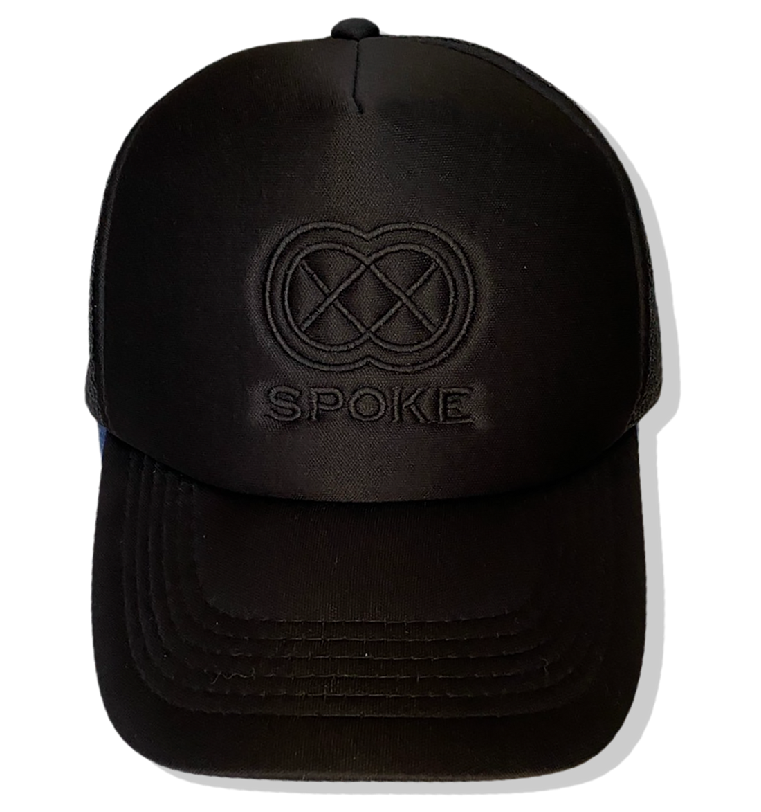 Black Snap Back, Foam Backed, Mesh Truckers Cap with 'SPOKE' and Spoke symbol embroidered on...