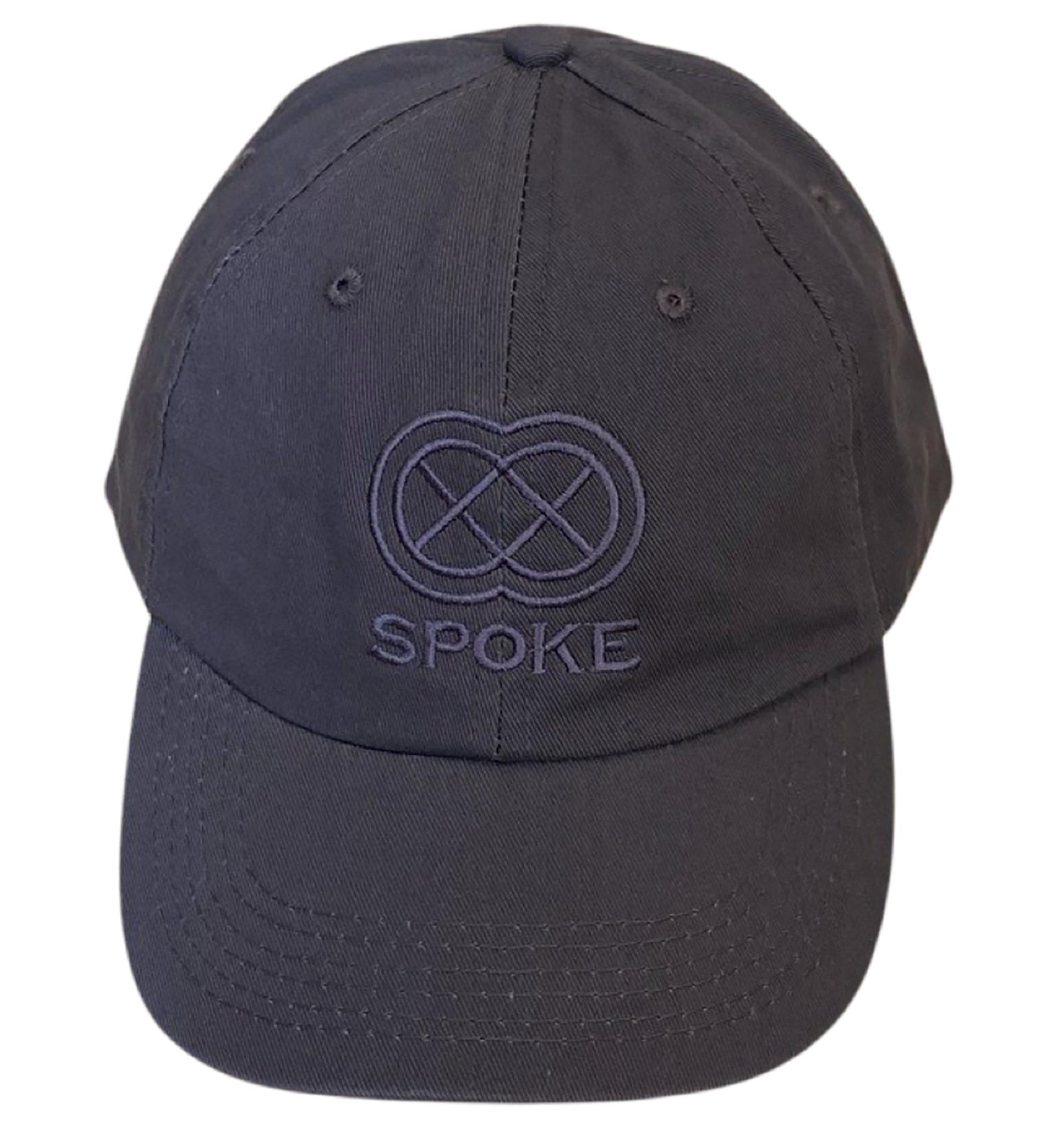 Charcoal Washed Chino Twill Cap with 'SPOKE' and Spoke symbol embroidered on the front.