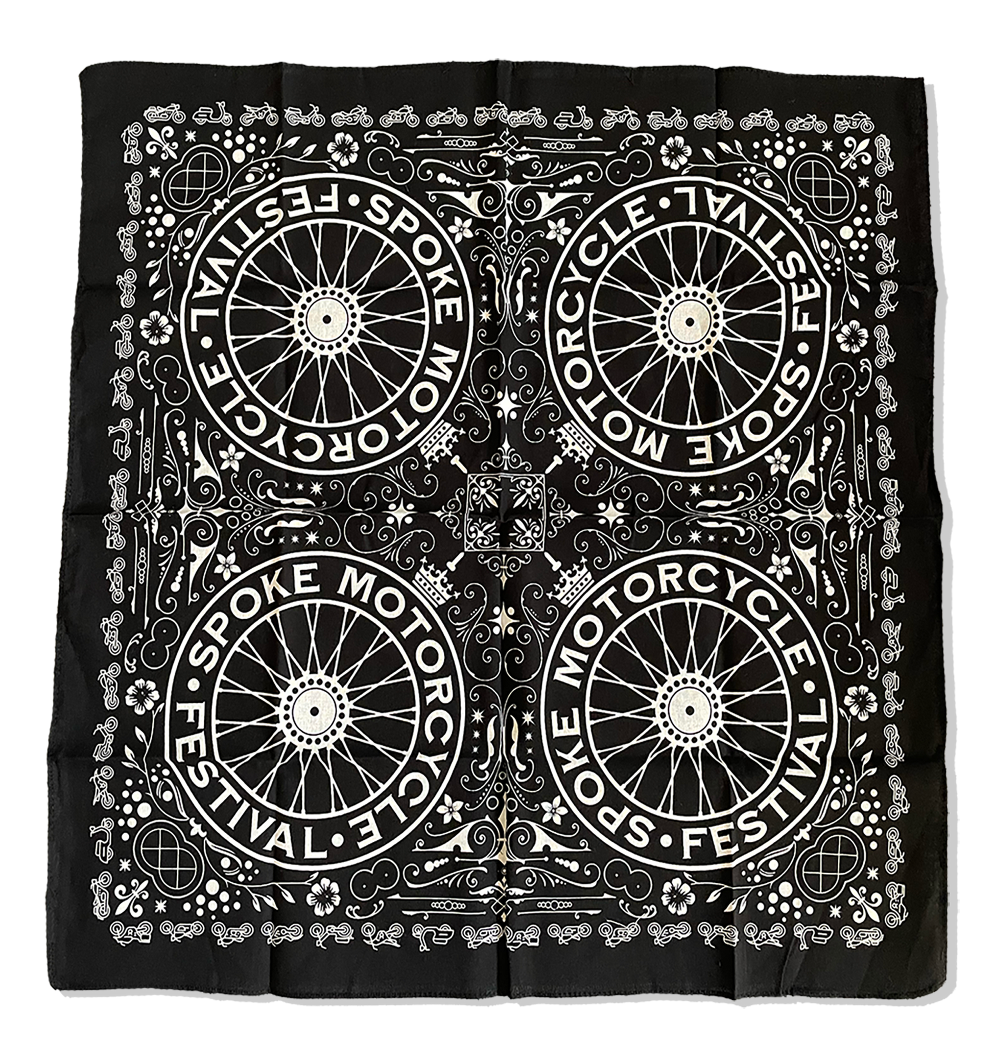 100% Cotton Bandana with Spoke Logo and various patterns. Wrap it around your head, your wrist, your neck, mop up a spilt beer or the sauce off your spoke t-shirt. It's handy to have around.