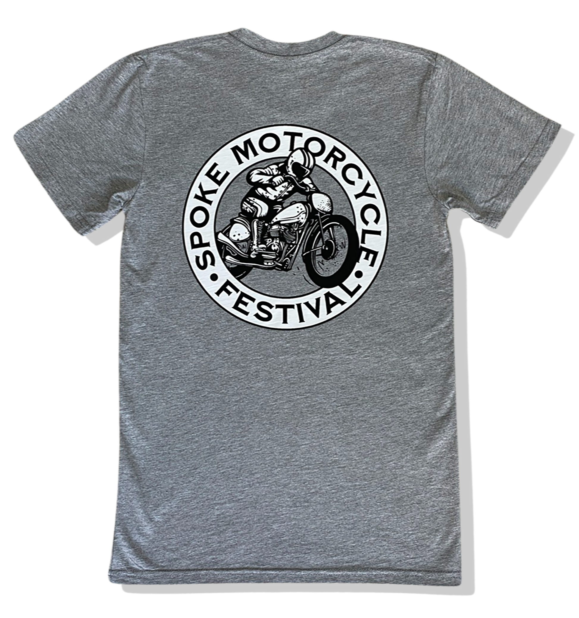 Spoke Motorcycle Festival Gray Marle T-Shirt - Retro Bike & Logo