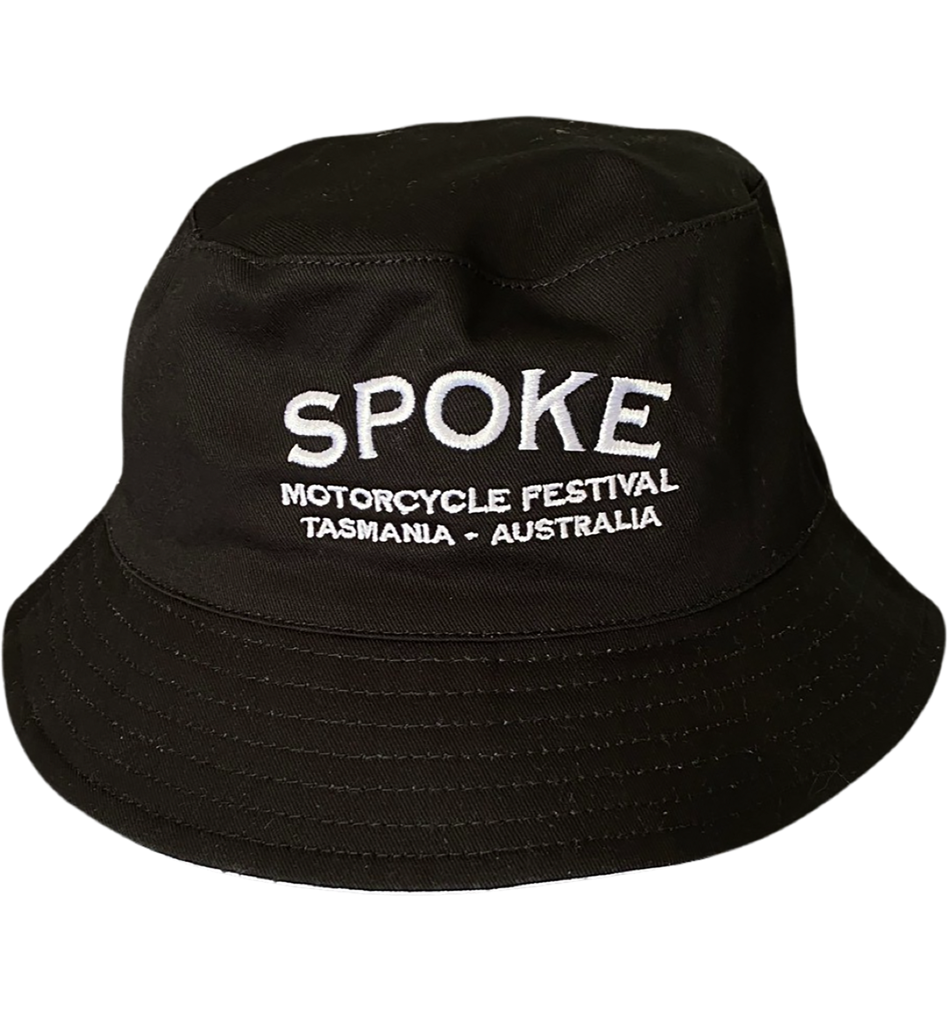 100% Cotton Reversible Bucket Hat with Spoke Embroidery on the front.